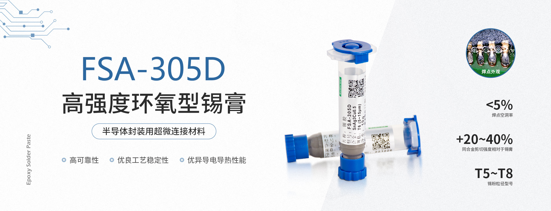 環(huán)氧樹脂錫膏,焊點(diǎn)加固,絕緣性加強(qiáng),適用微間距,工藝簡化提升效率,包括規(guī)模商用的 6號(hào)粉、7號(hào)粉、8號(hào)粉,以及尖端應(yīng)用9號(hào)和10號(hào)粉